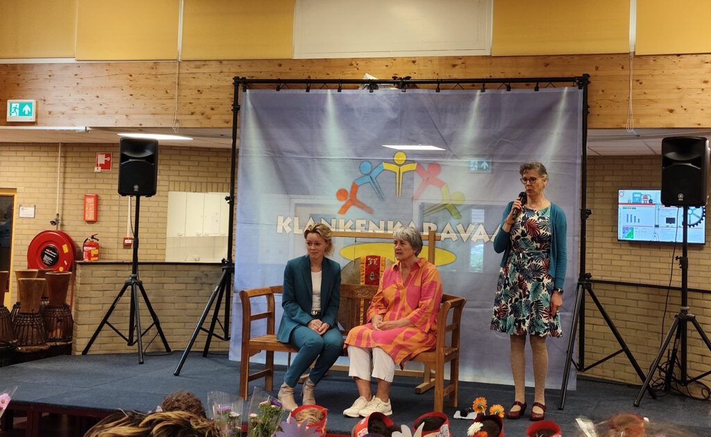 Naast de feestelijke activiteiten werd er ook afscheid genomen. Juf Rina werd in het zonnetje gezet vanwege haar welverdiend pensioen na 18 jaar bij CNS en juf Lesanka verlaat na 4,5 jaar De Caleidoscoop als directeur. De sleutels van de school werden symbolisch overgedragen aan de nieuwe directeur, juf Marleen, die op 30 september is gestart.